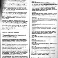 Radio Cora continued to exist throughout the 70’s with numerous CRTC problems because of the fact that cable FM was and is not a recognised form of radio. Regulations focus on broadcast and technically Cable FM, with no transmitter is not seen as a legal regulatory entity. Eventually the CRTC gave up trying to get the Rocky Mountain Radio Society to apply for the necessary licence and filed all information under “experimental”. Today, we licensed by SOCAN.